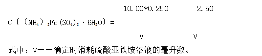 4.6.3 硫酸亞鐵銨標(biāo)準(zhǔn)滴定溶液濃度的計算: