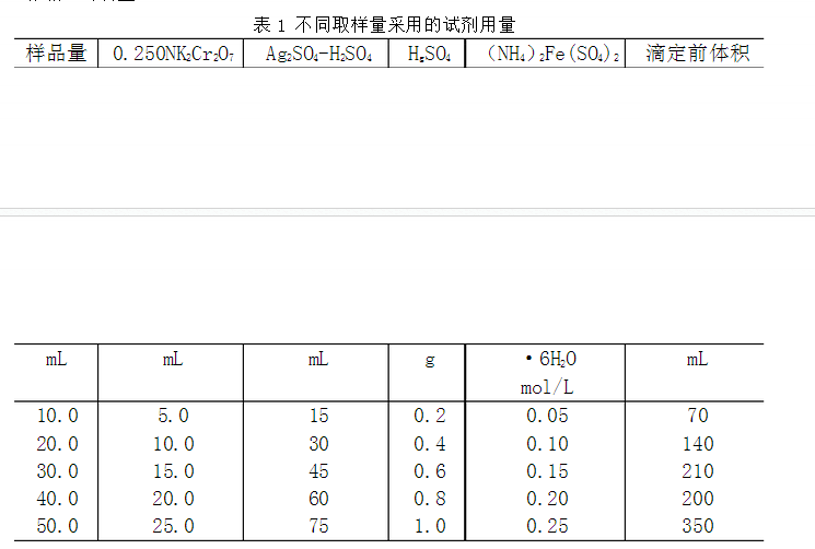 7.9 在特殊情況下,需要測定的試料在10.0mL到50.0mL之間,試劑的體積或重量按表1作相應(yīng)的調(diào)整。