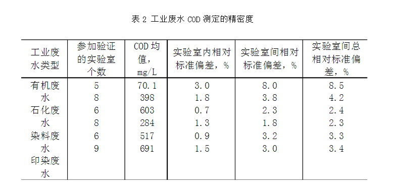 該溶液的理論COD值為500mg/L,如果校核試驗的結(jié)果大于該值的96%,即可認(rèn)為實驗步驟基本上是適宜的,否則,必須尋找失敗的原因,重復(fù)實驗,使之達(dá)到要求。 7.7 去干擾試驗:無機(jī)還原性物質(zhì)如亞硝酸鹽、硫化物及二價鐵鹽將使結(jié)果增加,將其須氧量作為水樣COD值的一部分是可以接受的。
