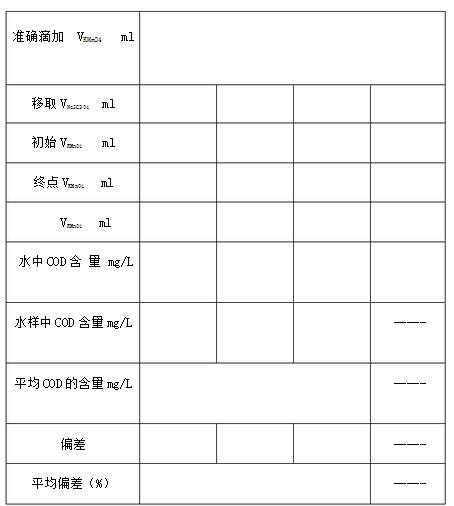 用移液管準(zhǔn)確移取100.00ml水樣,置于250ml錐形瓶中加5ml 1:3 H2SO4,用滴定管準(zhǔn)確加入10.00ml 0.002mol/L KMnO4溶液,搖勻。將錐形瓶放在電爐子上加熱**沸騰,并持續(xù)30min。取下錐形瓶,用移液管移入10.00ml Na2C2O4標(biāo)準(zhǔn)溶液、搖勻,溶液由紅色變?yōu)闊o色,再移入10.00ml Na2C2O4標(biāo)準(zhǔn)溶液,搖勻。趁熱用0.002mol/LKMnO4標(biāo)準(zhǔn)溶液滴定**剛出現(xiàn)粉紅色,并保持30s不褪色,即為終點(diǎn)。記錄數(shù)據(jù)。 4.空白樣耗氧量的測定