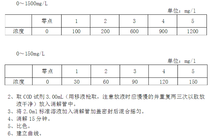 公式:COD值=K低(A測(cè)量-A空白)+b(低量程) COD值=K高(A測(cè)量-A空白)+b(高量程)
