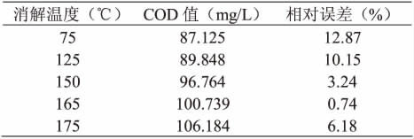 COD 的測(cè)定值逐漸接近理論值,測(cè)定的相對(duì)誤差逐漸變小,但當(dāng)溫度達(dá)到 165℃ 時(shí),再升高溫度,COD
