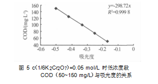 7)=0.05 mol/L, COD 為 50~150 mg/L 時(shí),水樣 COD 與吸光度的變化