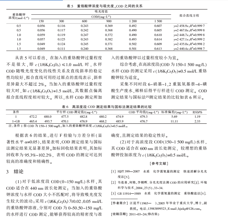 COD 為 50 mg/L 的水樣, 當(dāng)重鉻酸鉀的加入濃 |