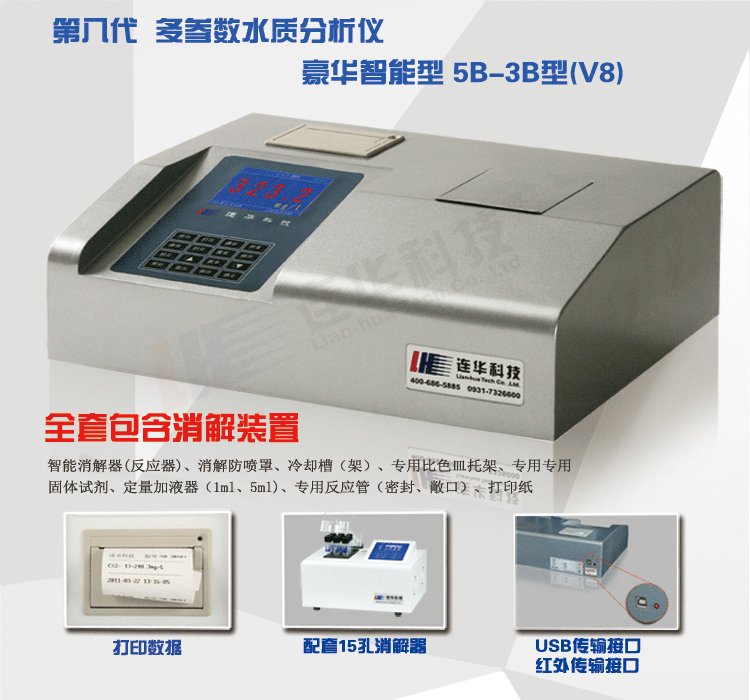 簡介: 這三款組合儀器分別是5B-3B型(V8)多參數水質分析儀,5B-3BN型(V8)總氮測定儀,5B-1型(V8)型智能消解器.水質分析儀是運用**新的電子機械技術研發的第八代產品。冷光源陣列技術的應用,使光源燈的壽命長達10萬小時,測定參數光源的切換由 手動升級為自動,消除了人為轉動的誤差因素。總氮測定儀是一款專門為測定 總氮而開發的儀器,采用紫外光分光光度法測定,具有 測定精度高、范圍寬、操作簡單。